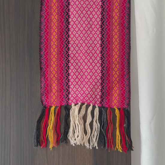 Handwoven in Peru from a soft alpaca-blend yarn, this lightweight, slim scarf combines artisanal craftsmanship with a modern designer-inspired zigvzag weave design.