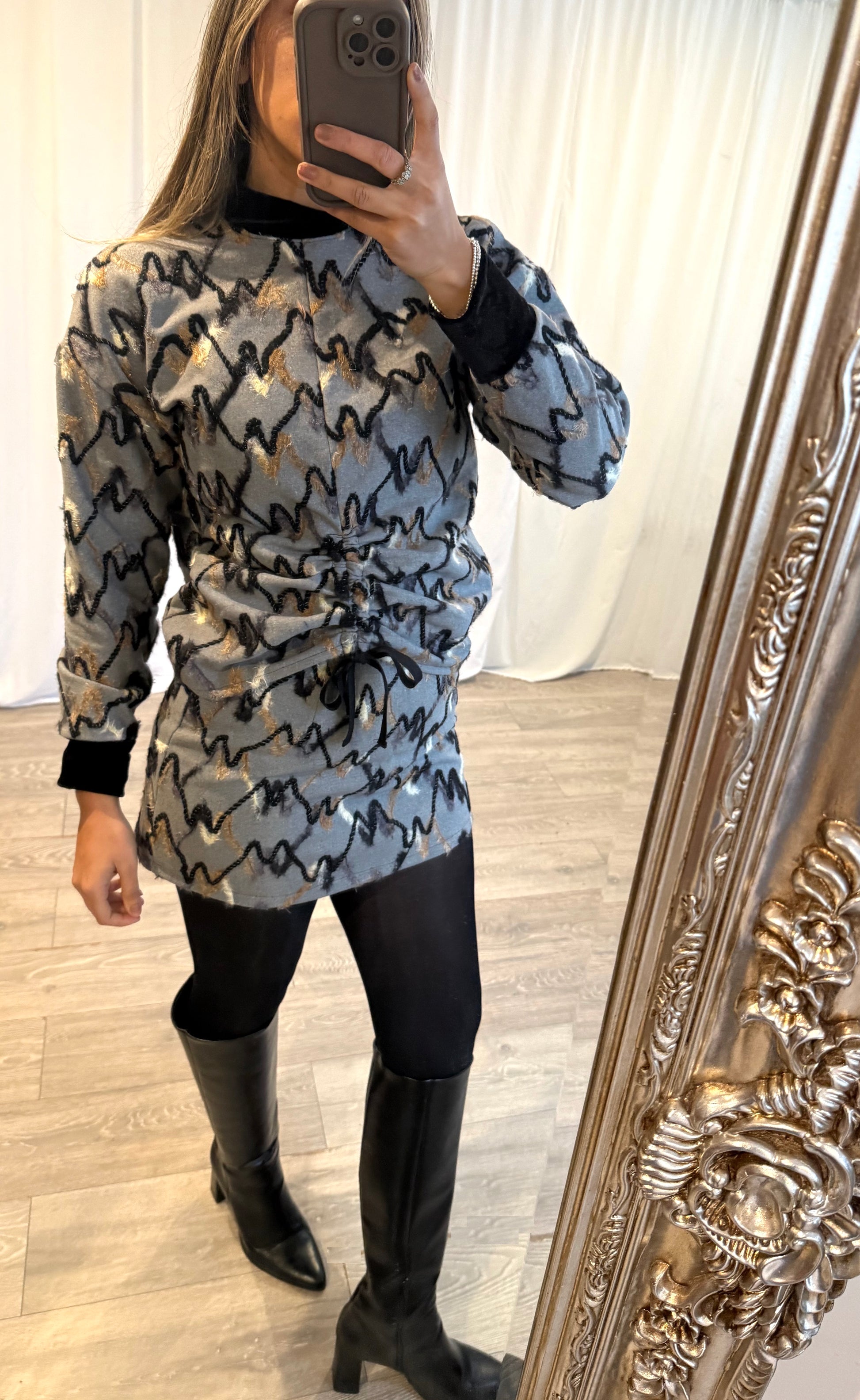 Cut from soft wool with a 3D textured embroidered fabric, The Oslo Jumper features a flattering adjustable front tie that creates a ruched, slouch silhouette.
