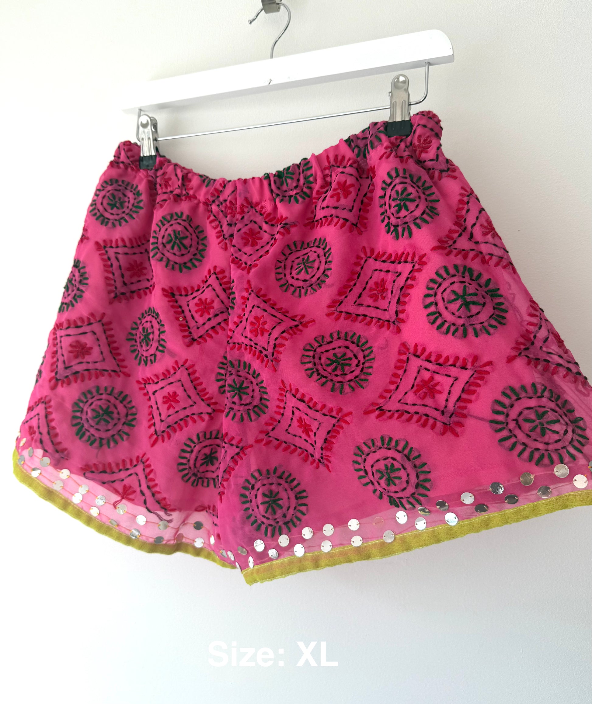 Please note: due to the hand-embroidered nature of the fabric, these shorts are delicate and should be treated with care.