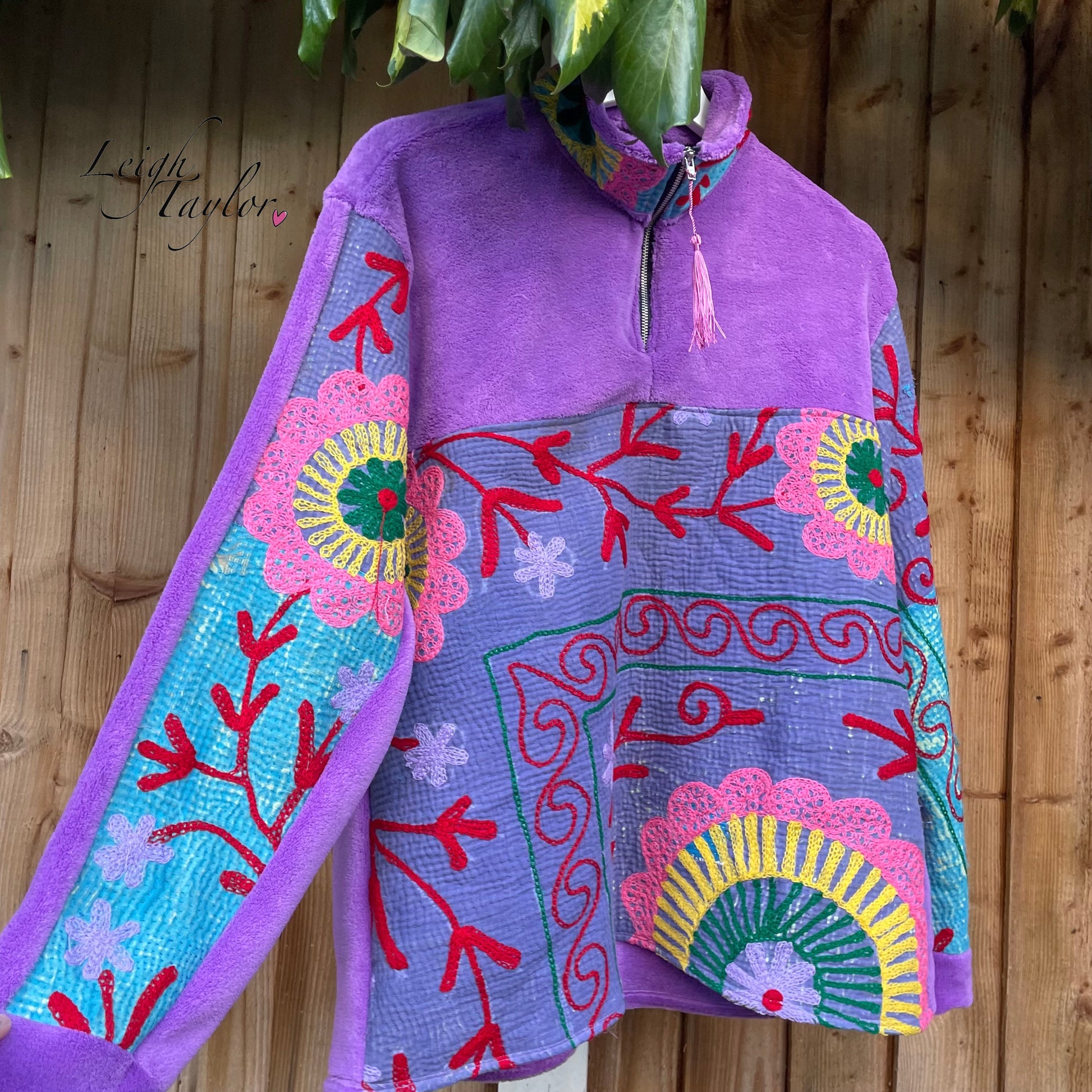 Introducing our New Vintage Suzani Fleece Collection, a perfect fusion of traditional craftsmanship and modern style. These one-of-a-kind fleeces feature vintage embroidered Suzani covers, ethically sourced from Asia and lovingly reworked in our UK studio.