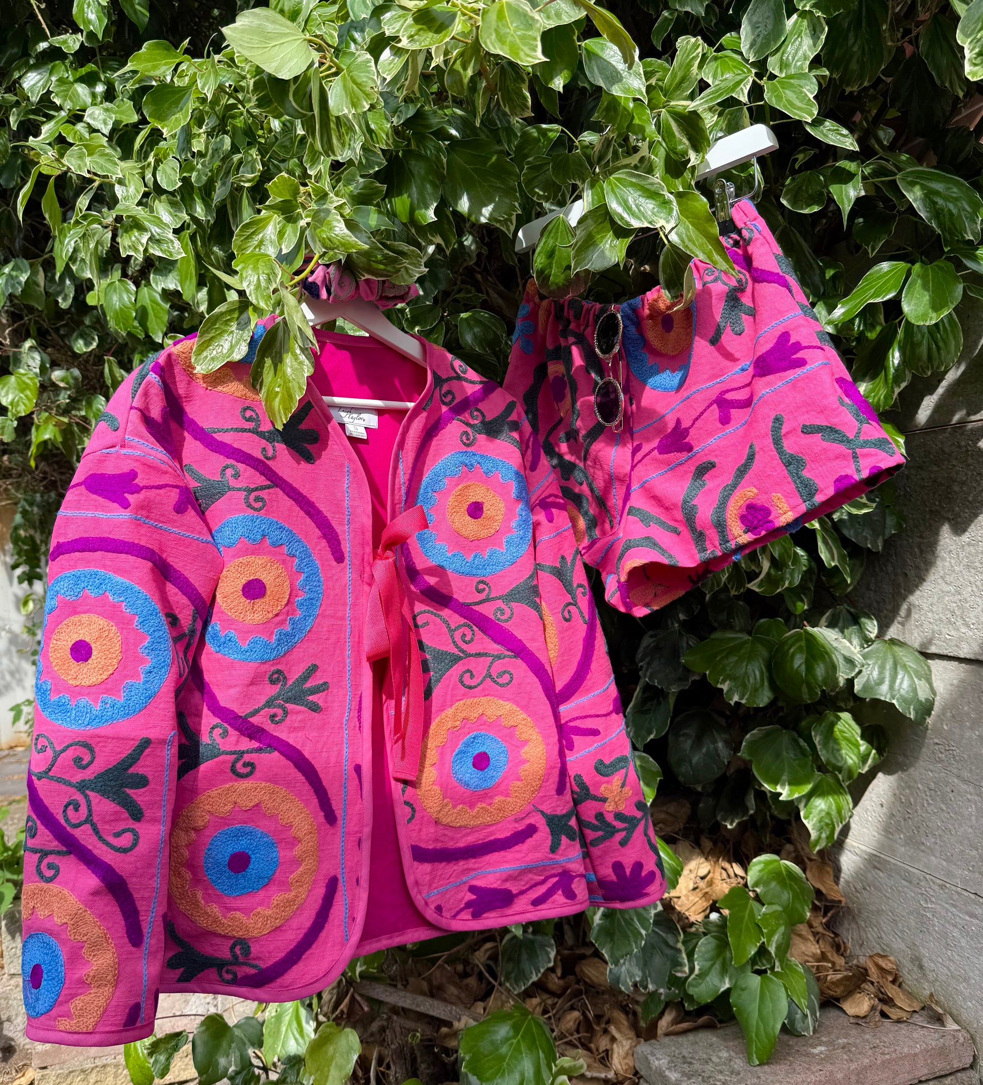 Crafted from rare Suzani fabric, each of these one-of-a-kind jackets tells a story of heritage and artistry. The embroidery is stitched by hand on the machine called Suzani, an intricate process passed down through generations making every piece a wearable work of art.